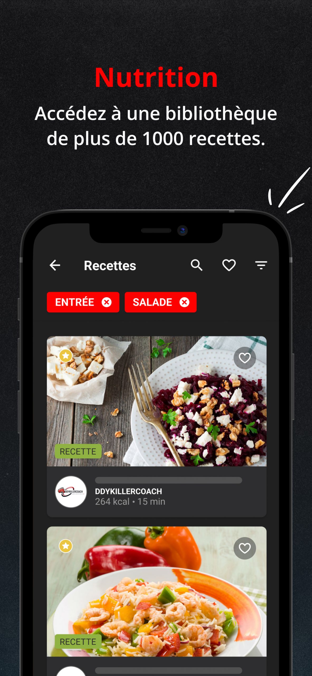 application avec videos des exercices et recettes